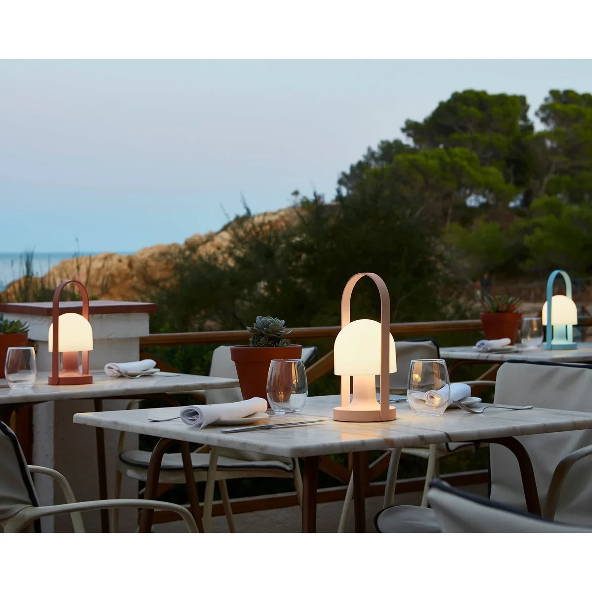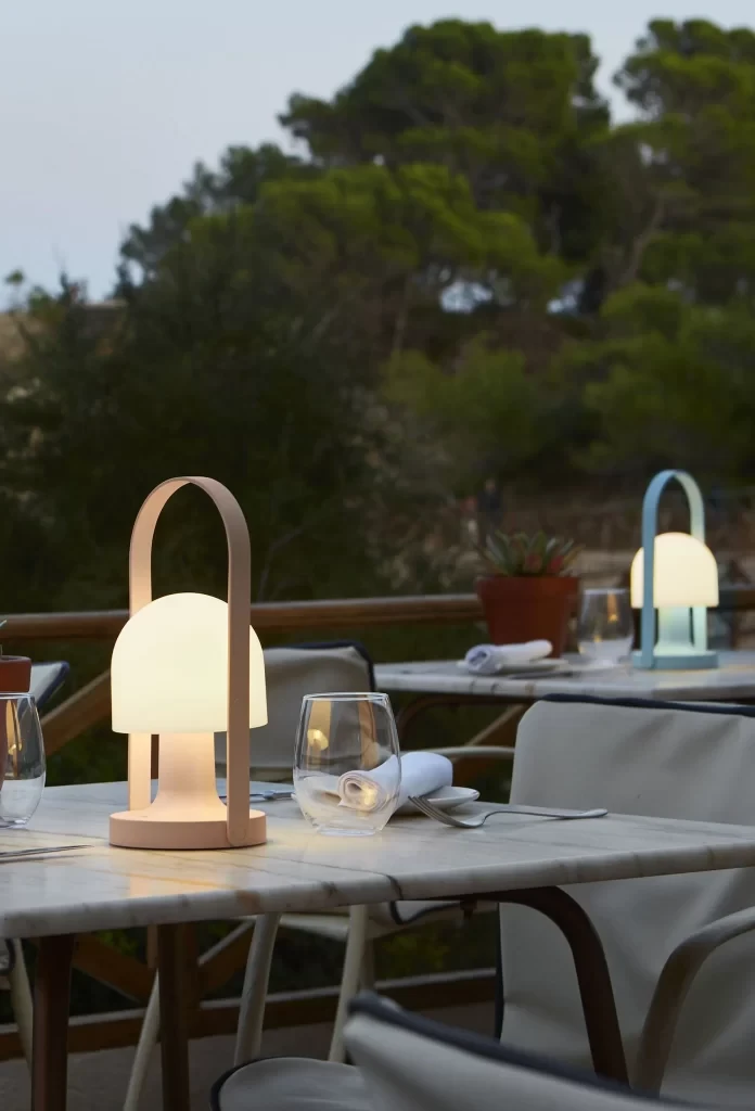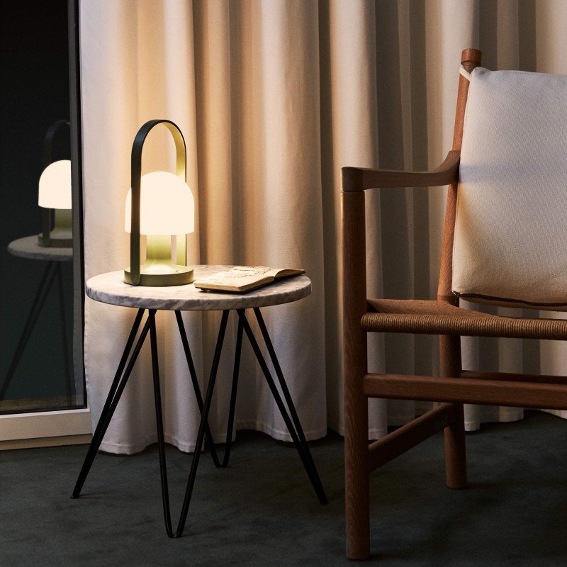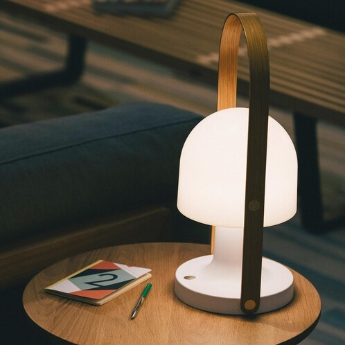 The new FollowMe lamp gains in performance: it includes three colour temperatures – from very warm to less so, with 2200K, 2700K or 3000K – to offer different shades of light. This breakthrough allows its lighting to better adapt to the time of day and respond to the user’s requirements. In addition, its on/off button has a dual function: it is also a new progressive dimmer that allows you to fine-tune the intensity of your light. The battery is optimised for even greater autonomy, and the new edition also offers a dual recharging system: it still has the USB-C cable connection but now comes with a single cradle charge to one unit or multiple cradles to charge several FollowMe units at the same time. An efficient solution for hospitality, contract, retail or restaurant environments. And finally, this latest edition has been revised both inside and out, emerging in a new glossy ivory white finish.
