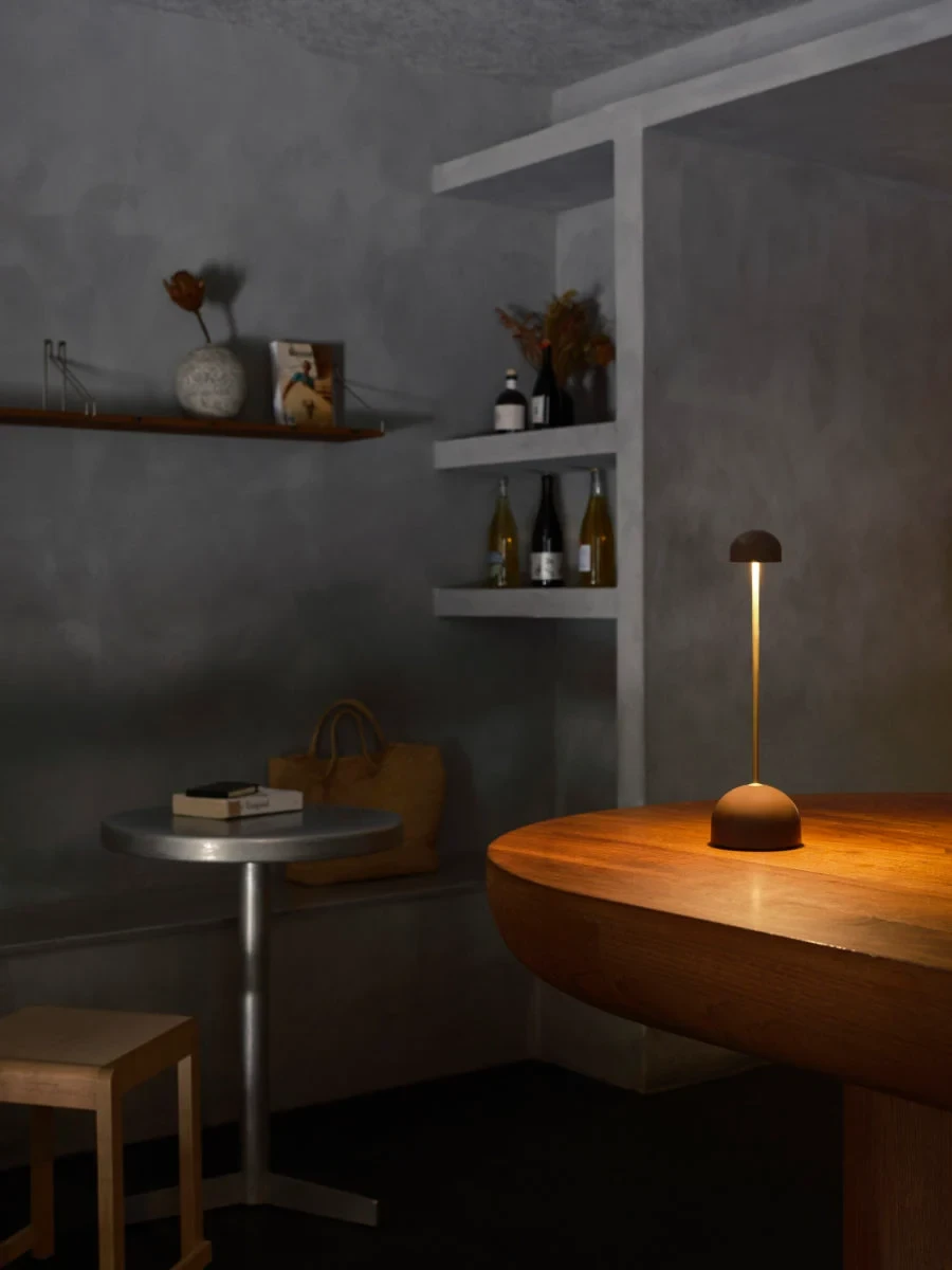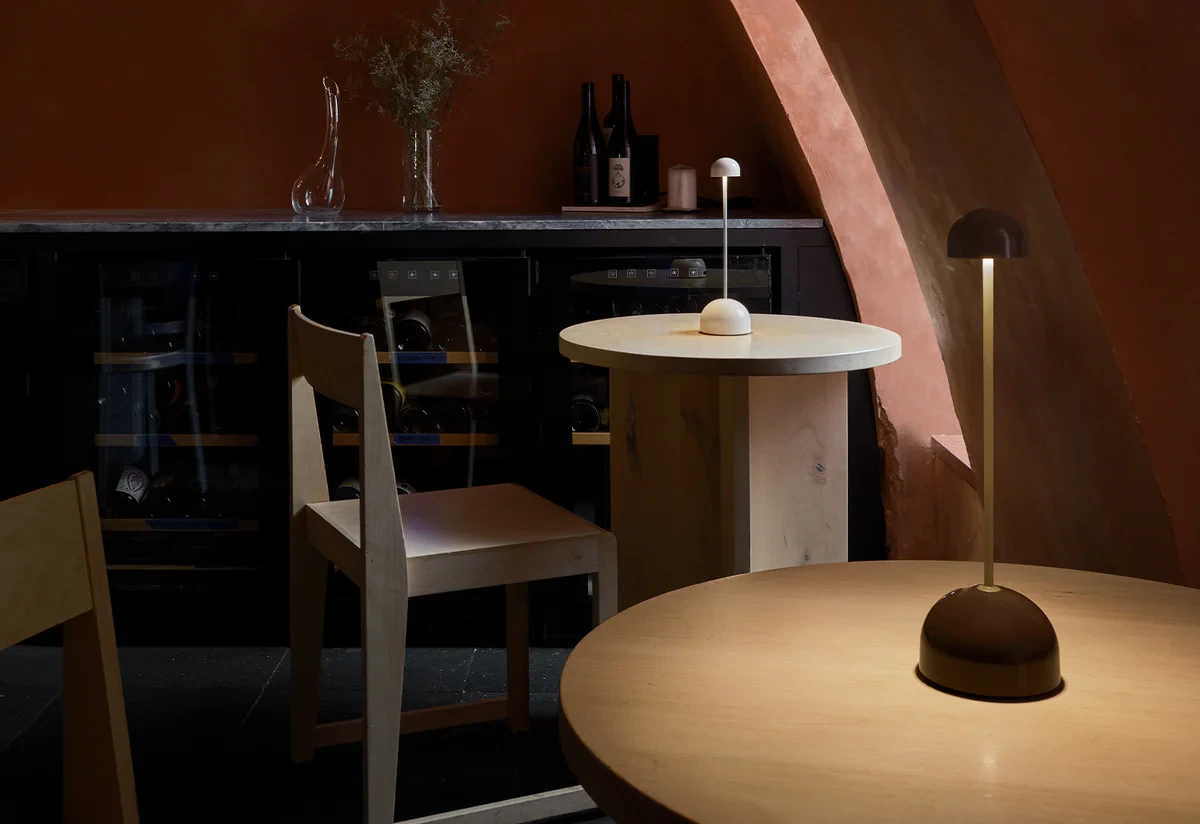 With a small opaque shade, the Sips illuminates the table directly but without dazzling or overpowering the space. Its wider base provides stability and includes a touch switch with three light intensities. It is available in two shades that fit easily in culinary and leisure spaces: warm white with a silver stem, and dark brown with the stem in a gold finish.
