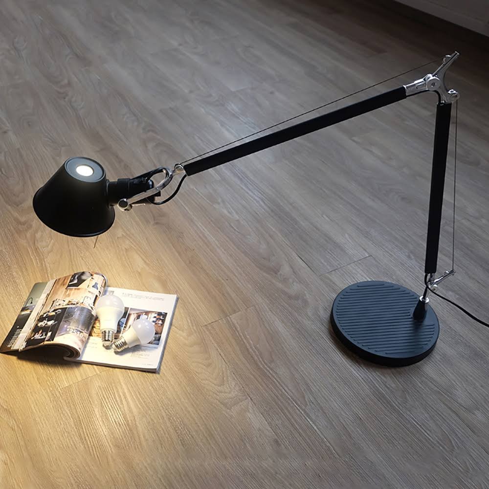 DESCRIPTION: Icon of Italian design and the result of the brainchild of designers Michele De Lucchi and Giancarlo Fassina, the Tolomeo lamp was launched on the market in 1987. It embodies the perfect balance between functionality and aesthetics. The design of the Tolomeo is characterized by clean and minimalist lines, with a structure made of aluminum. This material gives the lamp not only a modern and sophisticated look but also remarkable lightness and robustness. The lamp head, adjustable in all directions, is equipped with a stamped aluminum reflector that ensures uniform light distribution, making it ideal for various lighting needs. One of the distinctive elements of the Tolomeo is its articulated arm system. Thanks to an innovative spring mechanism, the lamp can be easily adjusted in height and tilt, ensuring great flexibility of use. This makes it perfect both as a desk lamp, to illuminate the work surface, and as a reading or table lamp, to create cozy and relaxing atmospheres. The timeless elegance and impeccable functionality have made it one of the most famous lamps in the world and it has received numerous international awards, including the prestigious Compasso d'Oro. This lamp is not just an object of illumination, but a true masterpiece of design that continues to inspire and fascinate generations of beauty lovers. Tolomeo Mini maintains the same dimensions of the diffuser as the standard version, shortening the length of the arms.